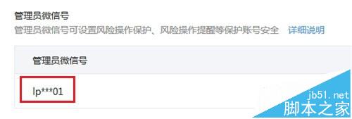 3、在“安全中心“组中,选择”管理员微信号“,点击右边的“详情”