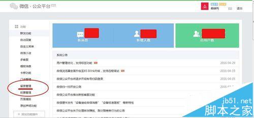 2、进入微信公众号后台,可以看见很多个功能菜单(因为留言功能目前还属于内测期,所以只有被微信公众平台授权过的公众号左侧栏才会显示“留言功能”),如下图: