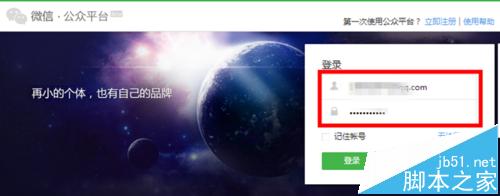 1、首先百度“微信.公众平台”,搜索弹出页面,选择带官网的一行;进入“微信.公众平台”登陆界面,输入您注册的账号,密码点击“登陆”;
