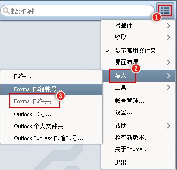 注:导入数据包括收件箱、发件箱、草稿、文件夹等数据。