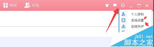 1、首先我们去下载QT语音,然后用QQ登录。登录之后右上方,点击圆形图标会出现系统设置。