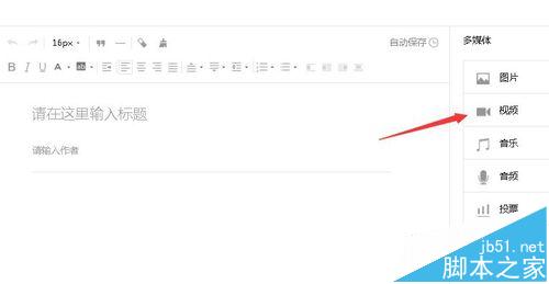 3、正文中,选择需要插入的地方,然后点击右侧多媒体中的视频