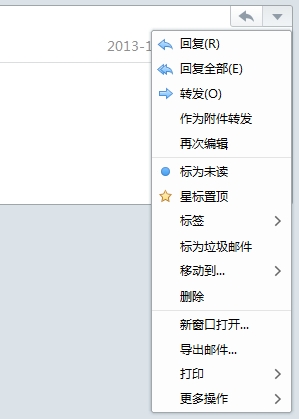 若仅需要单独操作其中一封子邮件,需在子邮件内容区域点击右键,或在子邮件右上角的菜单(如下图示)进行操作。