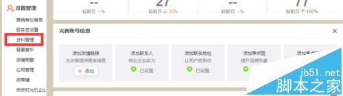 3、接着上一步点击了设置管理之后,下面又会出现一些子菜单,点击下资料管理即可,资料管理点击之后,在右边你会看见焦点图所在的选项,点击即可。