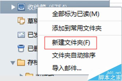 1、打开foxmail后,在【收件箱】处右击,在下拉列表选择【新建文件夹】