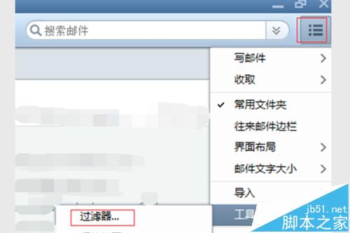 1、建立好分类文件夹后,设定过滤规则,让收到的邮件自动归类,点击界面最右侧的图标——【工具】——【过滤器...】