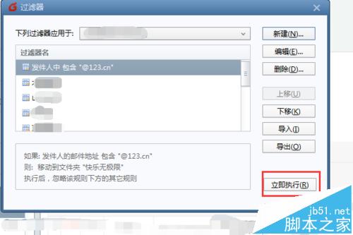 5、设定好规则后点击【立即执行】,即可对现有邮件进行分类,以后接受到的邮件也会依此规则进行归类