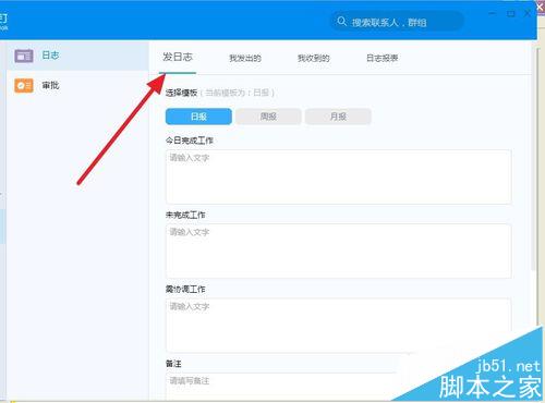 3、点击日志,出现写日报界面,这个就不用说了吧,写日志功能!上面的发送人就是你要发送给的上级或者其他伙伴,