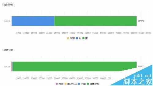5、这时候我们就能看到该公众号上的男女比例,语言比例等等。