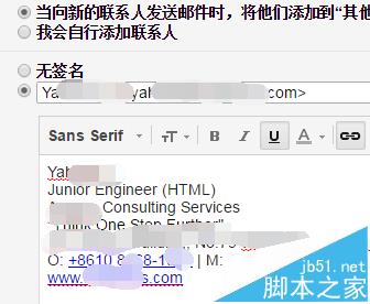 4、接下来就要给大家讲述一下,签名的一般规范了,gmail的签名一般是英文的,因为用这个邮箱比较多的还是外国人。我们签名的第一行是自己的名字。