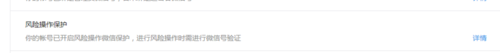 4、点击安全中心以后,我们就会看到上面有一个风险操作保护的,我们就可以点击这个打开了,点击后面的详情就好了。