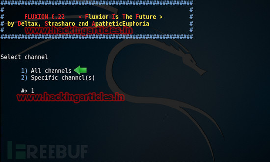 随后Fluxion会让我们选择网卡和信道。网卡的话需要大家自己分辨,但是信道选项一般都是选择第一个(全部信道)。