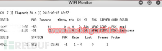 选择完后它会对网卡周围的WiFi进行扫描,扫描到你要破解的WiFi后按Ctrl+C停止。