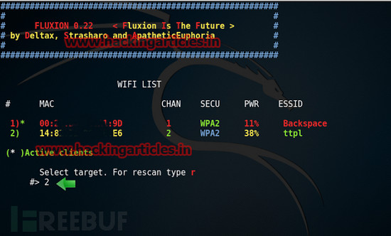 在这一步,我们选择自己想要破解的网络。如果我要破解列表内的第二个网络,那么就输入2。