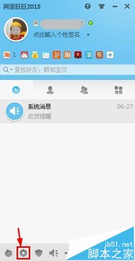 1、阿里旺旺界面上我们点击下方打开系统设置按钮。