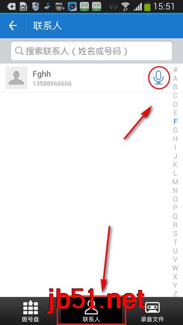 2、使用联系人进行拨号,需点击号码后面蓝色图标即可拨号