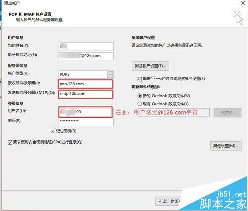 注意:登陆信息里面,用户名不包括”@126.com“;密码也和在126邮箱网页登陆时不一样。