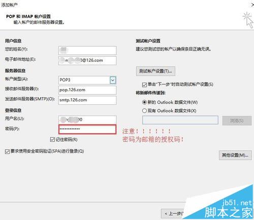 1、“添加账户”界面里的密码是在126邮箱网页中登陆的密码
