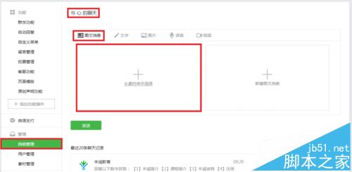 关键词自动回复同样可以给用户回复一条素材库图文消息。这一方法相对繁琐些,需要先设置关键词才行~