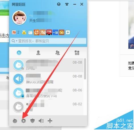 2、进入阿里旺旺后,点击左下角的设置按按钮。