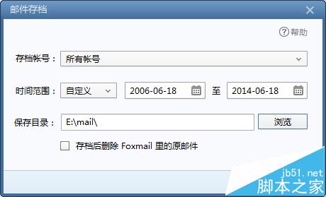 3、选择要备份的帐号,时间范围,以及存放路径,如下图: