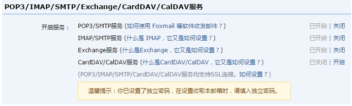 1. 请登录网页邮箱,确认开通了POP\IMAP功能(QQ、SINA邮箱等邮箱需要手动开通)