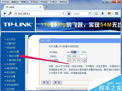 进入路由器后,先在左侧选项中选择“网络参数”这一项,打开,在其下选择“WAN口设置”。