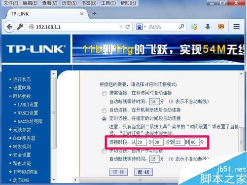 在其右侧窗口,找到并选择“定时连接,在指定时间段自动连接”这一项。