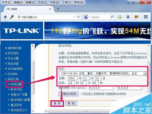 然后在左侧的“系统工具”下,选择“时间设置”,在右侧窗口,先选择时区,如下图,再设置当前时区的当地时间,设置好后,确定。