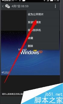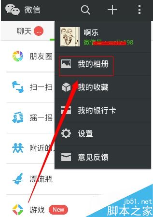 登录微信,点击页面右上角按钮,在出现的菜单中选中“我的相册”,点击进入我的相册