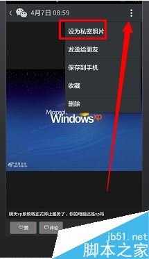 进入照片页面后,点击页面右上角按钮,在出现的菜单中选中“设为私密照片”