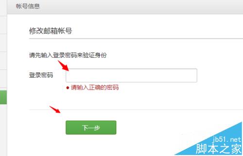 4、在文本框中输入您的微信公众平台登录密码,以验证您的身份,然后点击“下一步”按钮,如图所示。接下来就会发送信息到您的当前邮箱,点击“登录邮箱”登录您的邮箱。