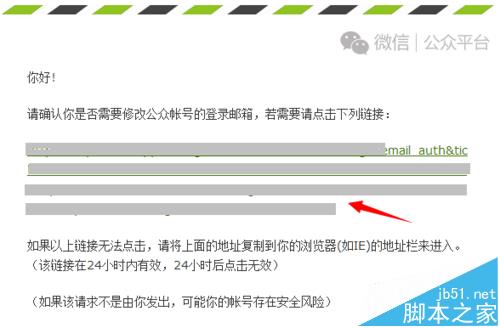 5、在邮箱中点击微信发送给您的邮件,点击邮件中的链接开始设置新邮箱,在打开的页面中输入新邮箱账号,点击“下一步”按钮即可更换邮箱成功。