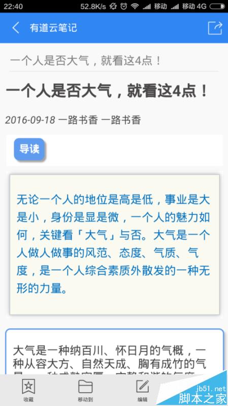 5、然后打开自己的有道云app。你会发现收藏的文章跑到这里了。成为自己随意编辑的文档,而且永远不会消失。随时随地查看,编辑。