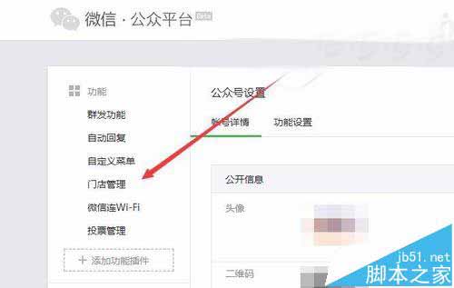 1、登录微信公众平台,通过验证后,进入公众号设置界面,打开 门店管理