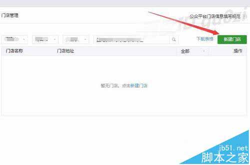 2、在 门店管理界面,选择好门店的地理位置后,点击 新建门户
