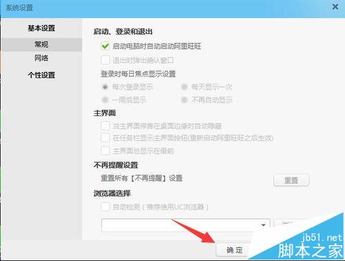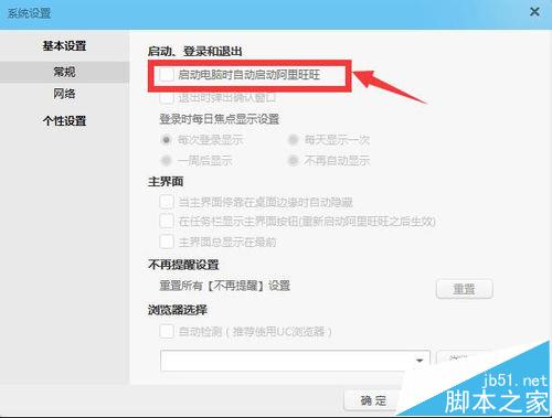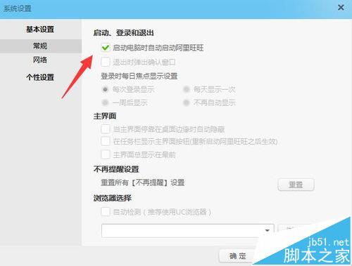 4、接下来,我们要将“启动电脑时自动启动阿里旺旺”前面的方块进行勾选。