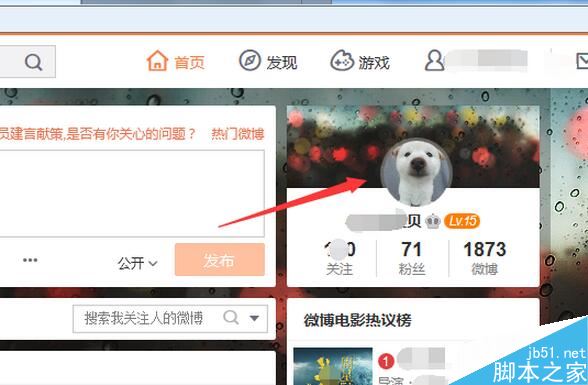进入到了个人的微博的账号的情况下,然后进行点击个人的微博账号头像。