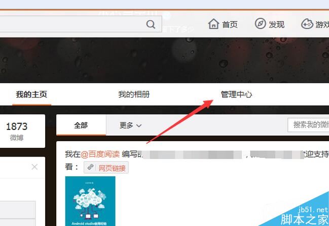 进入到了个人的主页中,进行点击菜单中的“管理中心”的选项菜单。