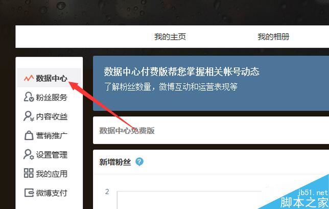 然后进行点击左边菜单列表中的“数据中心”的选项。