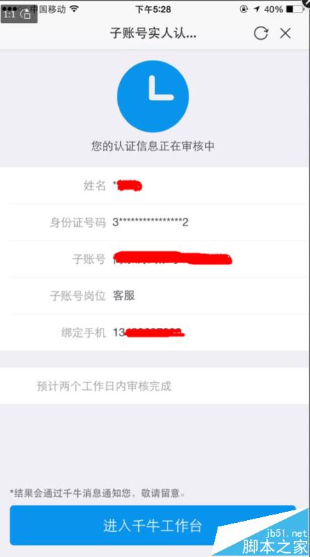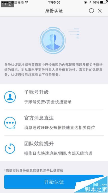 3、点击进入之后就会看到下图,然后用对应的子账号登陆手机千牛客户端扫描二维码进入子账号认证流程