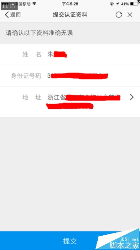 9、进入“提交认证资料”,信息确认无误,点击“提交”。