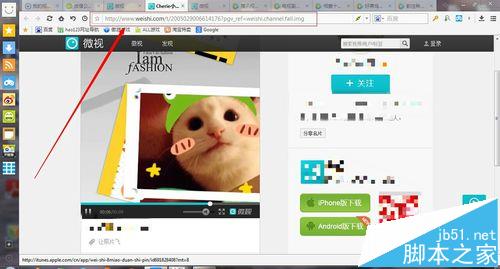 3、点击微视,直接跳转到微视网站,举例随意找一个视频,复制地址栏的链接
