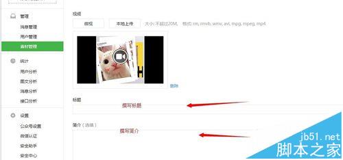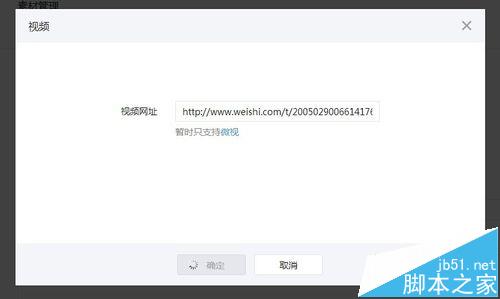 1、进入平台,素材管理-视频,目前支持微视的链接,本地的视频大小小于二十兆