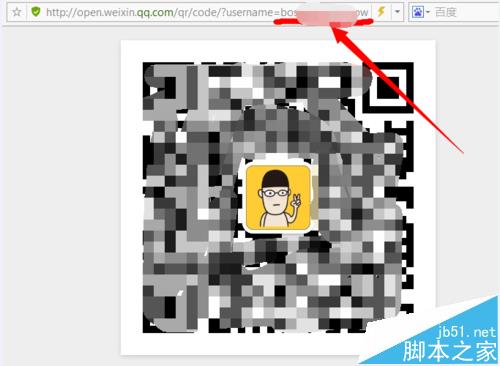 5、在打开浏览器,在网页地址栏输入open.weixin.qq.com/qr/code/?username=微信号(微信号这里填刚刚记下的微信号)并回车,就会出现公众号的二维码,右键另存为图片就可以下载该二维码。