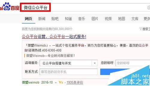 1、百度搜索“微信公众平台”找到微信微信公众平台官方网址。