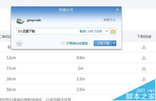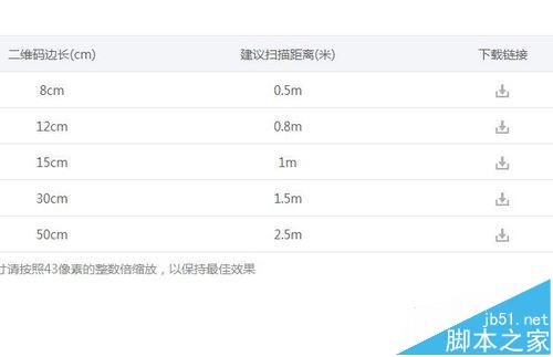 7、选择需要下载的二维码尺寸,这里有不同的尺寸可供下载。