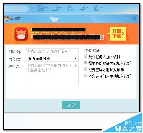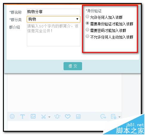4)在“身份验证"这里,有4个选择,可以选择其中一项作为加入此群的要求;