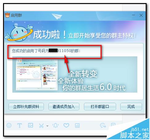 4、以上的都一 一设置好后,点击”提交“;系统即弹出对话框,显示创建旺旺成功,并提供群号;在这对话框中,点击“完成”;