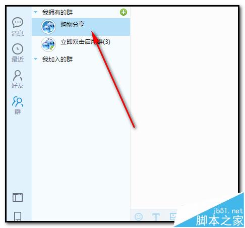 5、转回到旺旺聊天界面,在界面的左侧,点击“群”图标,可以看到刚才创建的旺旺群。